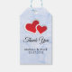 Mariage merci étiquettes cadeaux avec une illustration de 2 coeurs en papier unis - rouge avec une bordure blanche. Situé sur un élégant arrière - plan en marbre bleu glacé.