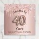 Une étiquette de faveur fillette et tendance pour une fête de 40e anniversaire. Un arrière - plan rose féminin, rose d'or faux métallique orné de gouttes de parties scintillant d'or faux rose et numéro 40 écrit avec une police de style ballon sur le devant. Avec le texte : Bravo. Personnalisez et ajoutez un nom ou un texte.