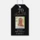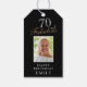 70 et Fabulous Black Elegant Script Photo 70th Birthday Gift Tags. Faites votre propre étiquette cadeau de 70e anniversaire pour elle. Customisez-le avec le nom et l'âge et insérez votre photo dans le modèle.