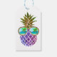 Tags cadeaux d'ananas violet tropical - Rencontrez notre adorable ananas violet, en rocquant une paire de lunettes de soleil cool avec une torsion de plage! A l'ombre, une scène de plage sereine avec de l'eau scintillante et un palmier balançant. La teinte violette unique de l'ananas reflète la surface scintillante de l'océan, ce qui fait de ce design un mélange parfait de vibes tropicales et de charme ludique. Idéal pour les amateurs de couleurs et de fantaisie.