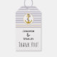 Étiquettes-cadeau Ancrage or rayures mariage nautique Merci