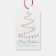 Un joli sapin de Noël au-dessus de Joyeux Noël dans un joli script vert cursif amusant. Customisez ces étiquettes cadeaux amusantes et modernes sous la chaîne des lumières de Noël.