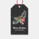 Apportez une touche de charme intemporel à votre emballage avec cette étiquette cadeau de vacances noir enneigé. Le design est composé de feuillage aquarelle, d'ornements rouges et d'un effet de neige doux associé à une élégante typographie de script de brosse. Moderne mais classique, il est le choix idéal pour ceux qui aiment le style de vacances traditionnel avec une touche contemporaine. Personnalisez avec votre nom de famille ou message pour rendre chaque cadeau merveilleusement unique.