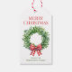 Cette étiquette cadeau de Noël personnalisée comporte une couronne verte avec arc en vichy rouge. Personnalisez avec votre choix de texte spécial à l'avant et à l'arrière. Parfait pour les sacs cadeaux et les faveurs de fête.