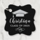 Ces étiquettes de fin d'études en noir blanc et en argent sont caractérisées par un design simple et élégant avec le prénom de la grade dans l'écriture moderne et leur année de classe, accentué d'une casquette de fin d'études et de la conception de défilement. L'espace pour une photo couleur complète est inclus au dos - parfait pour afficher une photo senior ou une photo de cérémonie de remise des diplômes préférée.