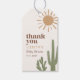 Dites merci à vos participants baby showers avec ces étiquettes de faveur, avec cactus et aquarelle soleil dans des couleurs chaudes.
