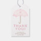Baby shower parapluie rose aquarelle merci étiquette cadeau.