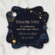 Ajoutez une touche de finition rêveuse à vos faveurs de mariage avec ce tag de remerciement céleste boho. Doté d'un ciel bleu marine luxueux, d'étoiles dorées chatoyantes et d'un script élégant, ce tag remercie vos invités pour la célébration sous les étoiles. Parfait pour les mariages célestes, boho et étoilés, idéal pour les faveurs, les cadeaux ou les sacs de bienvenue. Idéal pour les faveurs de mariage, les sacs de bienvenue ou les cadeaux de remerciement pour un thème mariage étoilé.