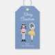 Cette étiquette cadeau de Noël de noisette présente une jolie illustration d'un craquelin et d'une ballerine dansante sur un arrière - plan bleu avec le dicton : Joyeux Noël. Personnalisez-le : ajoutez votre nom Enfants, ou changez de salutation à votre goût! Une étiquette cadeau mignonne et colorée pour les petites filles et les amateurs de ballet!