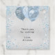 Un arrière - plan métallique à l'aspect faux argenté. Décoré avec de la poussière et des ballons de faux parties scintillant bleus. Personnalisez et ajoutez un nom et une date. Le nom est écrit avec un script de style écrit à la main. Retour : ajoutez votre note de remerciement.