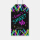 Un motif de bâtons lumineux et de bracelets dispersés dans une gamme de couleurs néon vives ajoute un élément amusant à la conception de cette étiquette de cadeau Sweet Sixteen. Ajoutez un nom et un message personnalisés à l'aide du modèle fourni. Recherchez ID760 pour voir les invitations et autres fournitures de fête coordonnées avec ce design coloré.