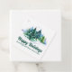 This beautiful custom business holiday party favor tag features gorgeous green Christmas trees in a winter landscape above your customized company name and Happy Holidays. Personalized holiday gift tags for a corporation or family.