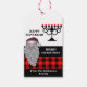 Happy Hanoukka & Joyeux Noël Tags cadeaux caractéristiques rouge buffle plaid arrière - plan Menorah, nom de famille modèle & un mignon visage Père Noël.Un design parfait pour Hanoukka.S'il vous plaît cliquer sur le bouton personnalisé pour le customiser avec votre propre nom de famille.