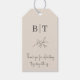 Étiquettes-cadeau Bride simple beige et Initiales de chambre Merci