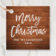 Étiquettes Cadeau Brush Script Rustique Carré de Noël en bois