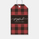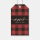 Red Holiday Buffalo Plaid with Joyful Script and Family Name Christmas Gift Tag.