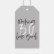 Célébrez votre anniversaire spécial en style avec ce blanc et gris Faire 50 look bon anniversaire Merci tag. Modifiez la couleur de l'arrière - plan pour customiser. Partie d'une collection.