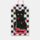 Étiquettes-cadeau Chat noir Meowy Noël scintillants en vichy