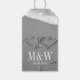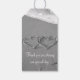 Coeurs tirés à la main dans sable plage de mariage de la marque cadeau de faveur. Créez vos propres étiquettes de mariage monogramme personnalisées pour les invités. Photographie de bord de mer noir et blanc avec typographie chic pour logo monogramme, message de remerciement, nom de la mariée et du marié / couple de jeunes mariés. Inclut également la date du mariage. Impression monogrammée classique pour mariage élégant thème de plage au printemps, été, automne, automne, etc. Comprend une jolie chaîne. Couleur arrière - plan personnalisable. Coeurs qui s'enclenchent. Beau thème romantique. Que pourrait dire votre message de remerciement personnalisé ? Voici un mignon exemple : le Merci pour le partage de notre journée spéciale.