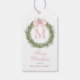 Étiquettes-cadeau Coquette Pink Bow Monogram Wreath Noël