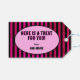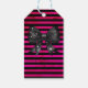 Halloween tag cadeau, rose rayé et sorcier avec arc gothique.