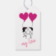 Cette marque de cadeau amusante de Saint-Valentin ou anniversaire présente un couple dessiné à la main tenant des ballons en forme de coeur en rose chaud. Le texte du script facultatif dit "mon amour". . L'arrière - plan peut être changé en n'importe quelle couleur qui correspond à vos goûts personnels.