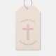 Étiquettes-cadeau Croix rose pastel communion