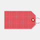 Cette étiquette de faveur comporte des lettres de biscuit qui épelle "avec amour" Le dos de l'étiquette est rouge avec des pois blancs