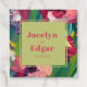 Texte rose chaud sur la forme carré vert clair avec peinture à l'huile inspiré arrière - plan floral.