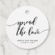 Les étiquettes de faveur de mariage avec les mots "Répandre l'Amour" dans un script de relaxation cursive en noir contre un arrière - plan blanc. Personnalisez-le en remplaçant le texte de l'espace réservé. Pour plus d'options comme changer la police et sa taille/couleur ou l'espacement entre les lettres cliquez sur le bouton "Personnaliser". *Veuillez noter que le filigrane Zazzle qui apparaît dans l'aperçu du zoom n'apparaîtra PAS sur le produit imprimé final. © Bois de rose et agrumes