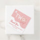 La marque de faveur de la fête du 2ème anniversaire de cette fille offre un joli design de remerciement. Le texte moderne dit "DEUX douces" accentuées d'une beigne gelée rose et des arroses. Le texte personnalisé vous permet de personnaliser avec un message de remerciement et le nom de l'enfant.