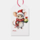 D'un côté de cette étiquette-cadeau de vacances se trouve l'image d'une adorable petite souris portant un casquette et une écharpe du Père Noël rouge et blanc, devant un sapin décoré. L'autre côté a une autre souris tenant une décoration de Noël. Le texte de chaque côté peut être facilement personnalisé, ou customisé par vous. Idéal aussi pour les petits et les grands !