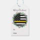 Ajoutez la touche finale à vos cadeaux de cette saison de vacances avec cette ligne Thin Gold Line 911 Dispatcher marque cadeau de Noël - Couronne de vacances dans un drapeau américain aux couleurs Dispatcher Drapeau, design moderne noir or jaune et blanc avec sainte et baies. Cette étiquette cadeau de Noël du répartiteur de police est parfaite pour les cadeaux de Noël de la famille de la police, de l'application de la loi ou du service de police. DROIT D'AUTEUR © 2020 Judy Burrows, Black Dog Art - Tous droits réservés. Expéditeur Thin Gold Line Tags cadeaux de Noël