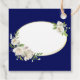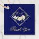 Elégante marque de faveur de mariage pour vous remercier cadeaux avec des fleurs d'aquarelle blanche antique avec des baies contre un riche arrière - plan bleu avec garniture d'or. Personnalisez avec vos initiales monographiques.
