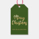 Étiquettes-cadeau Élégant Joyeux script de Noël or métallique vert