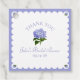 Ces étiquettes de remerciement carrées présentent une hydrangea bleue peinte à la main avec des bords festonnés doux et une bordure bleu lavande, apportant juste ce qu'il faut de douceur à vos faveurs de shower de mariage. « Merci » est arqué au-dessus de la fleur dans une police serif raffinée, tandis que le texte personnalisable vous permet de personnaliser avec le nom de la mariée et la date. Utilisez-les pour une touche de finition soignée qui semble toujours détendue et jolie.