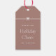Terminez vos cadeaux de vacances avec ces étiquettes de Noël simples et sucrées, personnalisables avec votre salutation de vacances préférée et la signature de la famille (montré avec "Wishing you Holiday Cheer") sur un arrière - plan en terre cuite. Un petit arc de cercle en haut complète cet élégant design de vacances minimaliste. Les dossiers sont blancs pour l'écriture des noms de destinataires si désiré.