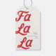 Cette étiquette cadeau de Noël rouge canneberge et ivoire de saison contient l'expression "Fa La", avec une typographie biologique vintage et amusante.