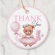 Des étiquettes-cadeaux baby showers ornées d'une adorable aquarelle illustrant un ours en peluche dans une robe rose mignonne.