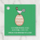 Illustration d'un poulet debout au-dessus d'un oeuf avec texte personnalisé des deux côtés.
