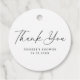 Faites une impression élégante à votre fête de mariage avec ces étiquettes de remerciement pour la fête de mariage à l'écriture manuscrite élégante. Leur design simple mais chic en noir et blanc ajoute une touche d'élégance à votre événement. Ces étiquettes de remerciement sont parfaites pour ajouter une touche de sophistication à vos cadeaux de fête de mariage. La police de caractères élégante et la palette de couleurs noire et blanche leur donnent une atmosphère luxueuse. Attachez-les à de petits cadeaux, friandises ou faveurs pour faire savoir à vos invités qu'ils sont spécialement conçus pour votre célébration. Pour la mariée qui veut que sa fête de mariage ait une atmosphère classique et intemporelle, ces étiquettes de remerciement sont indispensables. Leur design discret mais soigné donne le ton pour une soirée prénuptiale inoubliable. Offrez à vos