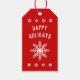 Ces étiquettes-cadeaux de flocon de neige ont un arrière - plan rouge avec un simple flocon de neige design au centre avec Happy Holidays salutation au sommet entourée de flocons de neige. Nettoyer le design minimal. Sur le dos de l'étiquette il est rouge avec plus de flocons de neige et la section À & De. Personnalisez ceci avec votre propre salutation, à qui le cadeau est destiné et de qui il est originaire. Vous pouvez également customiser cela plus en changeant la couleur arrière - plan à n'importe quelle couleur que vous aimez le vert, le bleu noir... etc