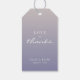 Gradient Whimsical Purple Floral Heureusement Jamais Après Mariages Tags Cadeaux. Ajoutez une touche d'élégance à vos cadeaux de mariage avec ces étiquettes cadeaux magnifiques et personnalisées. Le design floral violet blanc sur un arrière - plan doux à dégradé violet crée un look romantique et rêveur. Le devant de la balise contient la phrase "Heureusement toujours après" ainsi que les noms du couple et la date du mariage. Le dos du tag comprend un message "Amour + Merci", également personnalisé avec les noms du couple et la date du mariage. Ces étiquettes de cadeaux élégantes et élégantes sont la meilleure façon d'express votre gratitude à vos invités. Ce magnifique design fait partie de notre collection de fleurs violettes, assurant à votre mariage un séjour à la fois mémorable et beau.