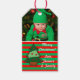 Des étiquettes cadeaux festives et amusantes avec des rayures vertes et rouges et la conception des arbres de Noël pour personnaliser avec votre propre photo et texte. (cliquez sur personnaliser pour repositionner ou redimensionner votre photo)
