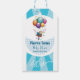 Belle étiquette cadeau de baby shower bleu et blanc avec un ballon, magnifiquement conçu pour tenir de belles surprises pour les invités célébrant la nouvelle arrivée.