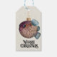 Celebrate the season with this charming Merry Christmas pufferfish ornament illustration, featuring a whimsical hand-painted fish transformed into a festive Christmas decoration.