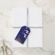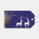 Étiquette cadeau de Noël | Bleu foncé sur un côté avec deux cerfs blancs et un arbre d'hiver doré - Paix sur Terre avec scène d'hiver moderne sur le dos