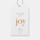 Que votre saison des fêtes soit remplie de joie. Élégant Tags cadeaux de vacances. Maillot doré joie lettrage et fond couleur violet royal foncé.