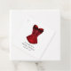Étiquettes de faveur sur le thème de la sorcière gothique rouge cramoisi avec un corset iridescent et un envers damassé.