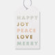 Un tag cadeau de vacances typographique moderne avec un style audacieux et lumineux dans une variété de couleurs alternées et feuille d'or.
